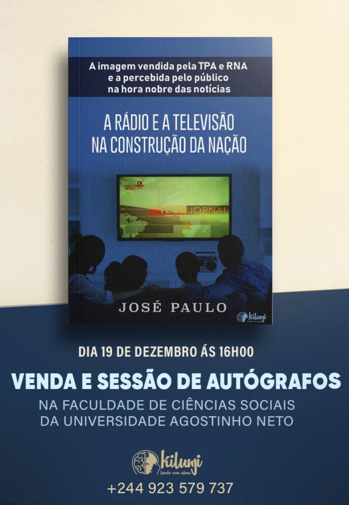 A Editora Kilunji e o Dr. José Paulo lançarão a obra “A Rádio e a Televisão na Construção da Nação: A imagem vendida pela TPA e RNA e a Percebida pelo Público na hora Nobre das Noticias” às 16h30, na próxima sexta-feira, dia 19 de dezembro, no Anfiteatro da Faculdade de Ciências Sociais da Universidade Agostinho Neto (UAN), na cidade de Viana, em Angola.